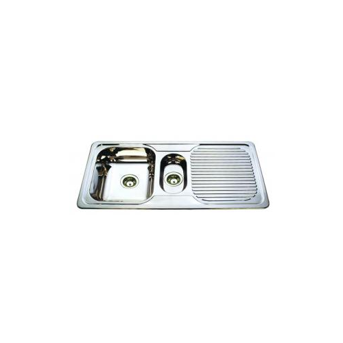 topmount kitchen sink -Overall Size: 1020*500mm Bowl size: 355*410mm 155*300mm Depth: 180mm -Polished FEATURES: -304 stainless steel. - 0.8mm thickness - Silencer Pad - With overflow Including a set of sink waste with overflow and fastening clips.