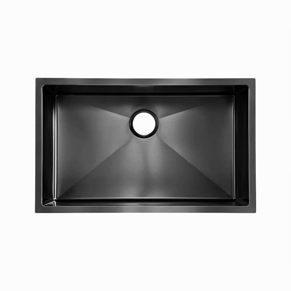 undermount gunmetal black coloured stainless steel kitchen sink sinks are all handmade individually with excellent craftsmanship sink waste is included -Overall Size: 700*450mm Bowl size: 650*400mm Depth: 200mm -PVD Coated FEATURES: -304 stainless steel. - 1.0mm thickness - Silencer Pad - With overflow Including a set of sink waste with overflow and fastening clips