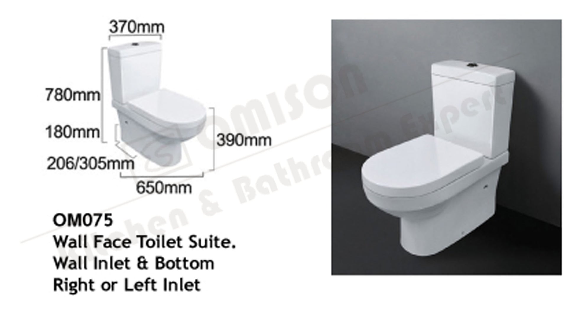 Size: 620*390*790mm Close coupled design Soft close Seat. Two-pieces Vitreous China toilet P trap: 180mm offset (Pipe to wall) S-trap: 150-220mm offset (Pipe down to floor) you can buy connector for S trap seperately from us "WELS" Water rating efficiency **** (4 star) Dual Flush 4.5/3L