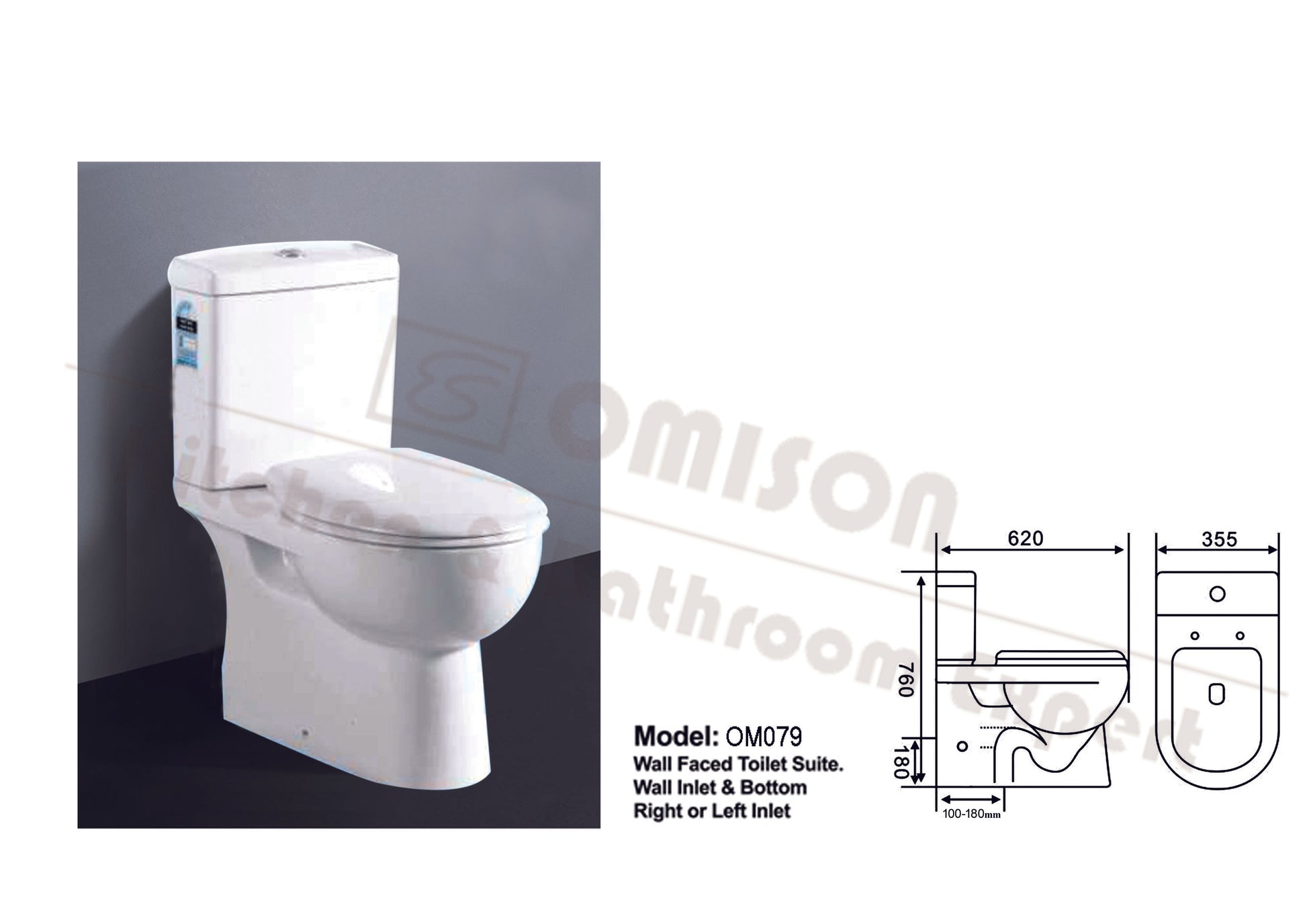 Size: 620*355*760mm Close coupled design Soft close Seat. Two-pieces Vitreous China toilet P trap: 180mm offset (Pipe to wall) S-trap: 100-180mm offset (Pipe down to floor) you can buy connector for S trap seperately from us "WELS" Water rating efficiency **** (4 star) Dual Flush 4.5/3L